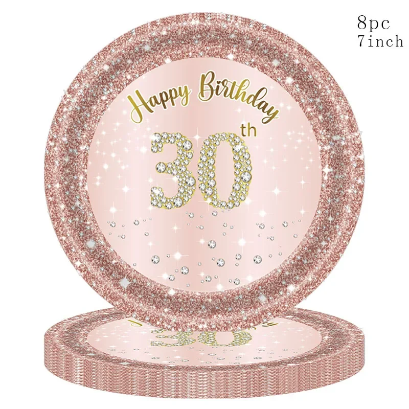 8Guests Rose Gold 30 Year Old Disposable Tableware Set 30 Years Tablecover Paper Plates Happy 30 Women 30th Birthday Ballon