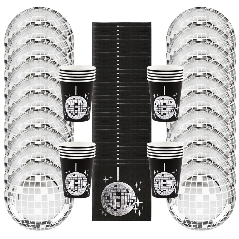 Disco Ball Theme Party Disposable Tableware Paper Plate Cup Napkins Wedding 70s Birthday Party Decoration Bachelorette Supplies
