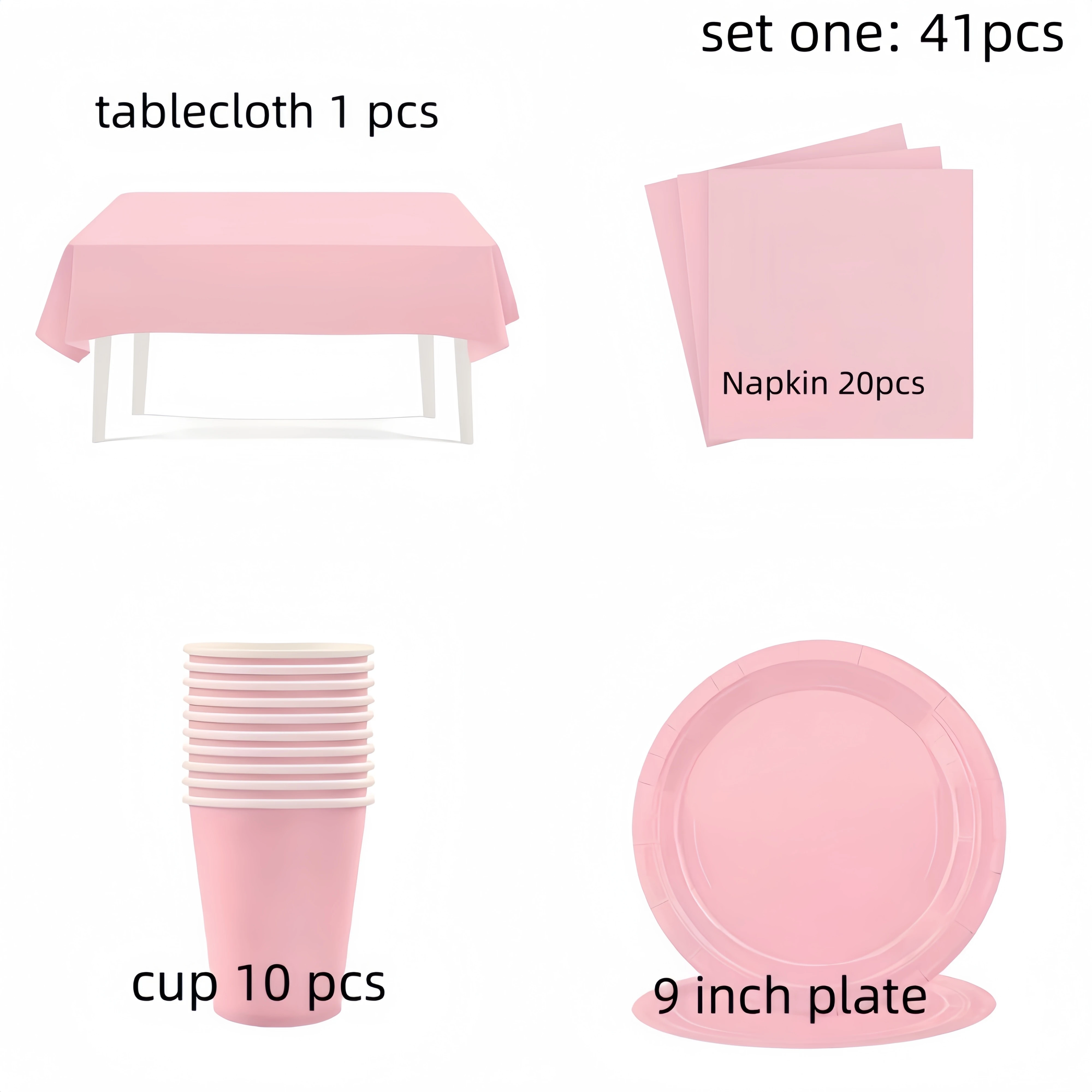Light Pink Party Supplies Dinnerware Set Include Plates and Cups Tablecloth for Baby Shower Wedding Birthday Valentine's Day